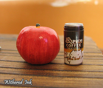 An apple for a snack. And a can of coffee! Since you can't drink your